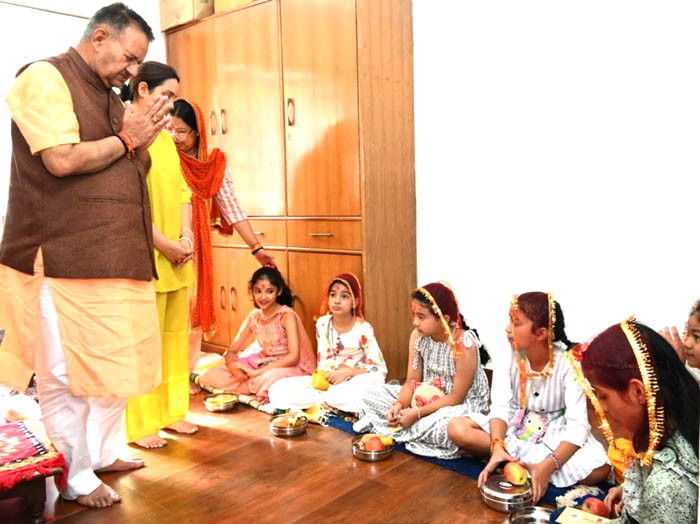 कैबिनेट मंत्री गणेश जोशी ने अष्टमी पर किया कन्या पूजन, प्रदेशवासियों की सुख-समृद्धि की कामना