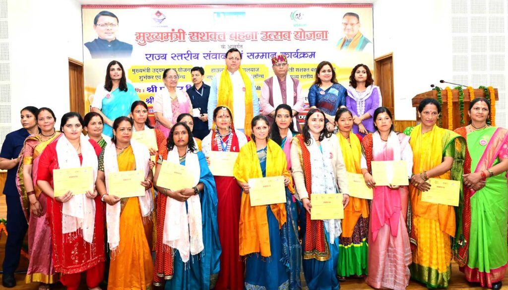 मुख्यमंत्री ने कहा कि प्रधानमंत्री के दूरदर्शी नेतृत्व में वोकल फॉर लोकल और लोकल टू ग्लोबल की पहल के अंतर्गत, लखपति दीदी के संकल्प को साकार करने तथा स्थानीय उत्पादों को वैश्विक पहचान दिलाने के लिए राज्य में हाउस ऑफ हिमालयाज अम्ब्रेला ब्रांड बनाया गया है। इसके अंतर्गत अभी 35 उच्च-गुणवत्ता वाले उत्पादों को लोगों तक पहुंचाया जा रहा है। शीघ्र ही हाउस ऑफ हिमालयाज के उत्पाद विश्व के अन्य देशों में भी निर्यात किए जाएंगे। उन्होंने कहा कि राज्य में 68 हज़ार स्वयं सहायता समूहों के माध्यम से लगभग 5 लाख महिलाएं संगठित होकर अपना व्यवसाय कर रही हैं। 2023 में शुरू की गई मुख्यमंत्री सशक्त बहना उत्सव योजना के माध्यम से हमारी बहनों ने विभिन्न आयोजनों में 27 हज़ार से अधिक स्टॉल लगाकर 7 करोड़ रुपये से अधिक के उत्पादों की बिक्री की है। प्रदेश की 1 लाख 63 हज़ार से अधिक बहनें लखपति बन चुकी हैं। महिला स्वयं सहायता समूहों द्वारा बनाए गए उत्पादों की प्रोसेसिंग एवं मार्केटिंग हेतु 49 ग्रोथ सेंटरों की स्थापना की गई है। इन उत्पादों के प्रभावी विपणन के लिए 13 जनपदों में 33 नैनो पैकेजिंग यूनिट्स, 17 सरस सेंटर, 3 राज्य स्तरीय विपणन केंद्र तथा 8 बेकरी यूनिट्स का भी संचालन किया जा रहा है। केंद्र सरकार की वन स्टेशन, वन प्रोडक्ट योजना के अंतर्गत देहरादून और हरिद्वार रेलवे स्टेशनों पर महिला स्वयं सहायता समूहों के उत्पादों की बिक्री के लिए विशेष केंद्र स्थापित किए गए हैं।
