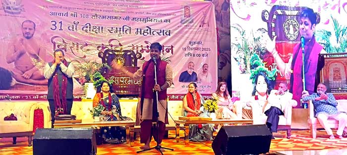 कार्यक्रम की जानकारी देते हुए मीडिया कोऑर्डिनेटर मधु जैन ने बताया कि संध्याकालीन बेला में आज विराट कवि सम्मेलन आयोजित किया गया। कार्यक्रम में मुख्य अतिथि अमित जैन राहुल जैन, सिद्धार्थ मेडिकल रहे। पुष्प वर्षायोग समिति द्वारा मुख्य अतिथि का माला पटका पहनाकर सम्मान किया गया। तत्पश्चात मुख्य अतिथि द्वारा भगवान् महावीर स्वामी के चित्र के सम्मुख दीप प्रजवलित कर कार्यक्रम का शुभारम्भ किया गया। कवि सम्मेलन में भारत देश के जाने माने प्रख्यात कवि हरी ओम पवार, सौरभ सुमन, अनामिका जैन अम्बर, डॉ. प्रतीक गुप्ता, विनोद पाल, श्रीमती मंजू यादव ने अपनी कविताओं से सभी श्रोताओं के मन को मोहा।