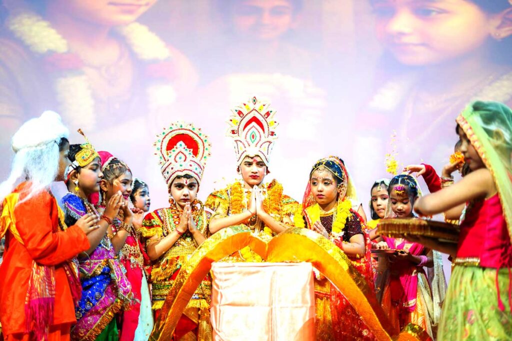 समूह गान (हिंदी तथा अंग्रेजी भाषा), पंच महाभूत तत्वों पर आधारित नृत्य माला, मर्चेंट ऑफ़ वेनिस के कोर्ट सीन से लेकर नर्सरी, एल.के.जी, यू.के.जी. के नौनिहालों द्वारा राम रामचरितमानस की प्रस्तुति विशेष आकर्षण का केंद्र रही।