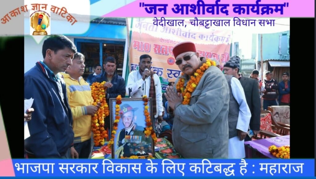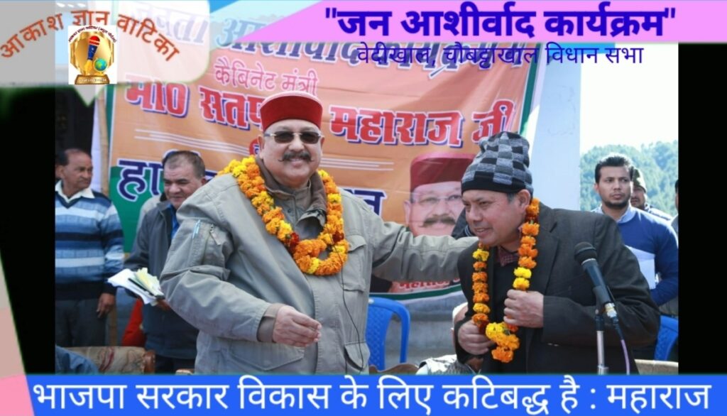 “जन आशीर्वाद कार्यक्रम” को संबोधित करते हुए वरिष्ठ भाजपा नेता, कैबिनेट मंत्री एवं चौबट्टाखाल विधायक सतपाल महाराज ने कहा कि जनता सच व झूठ के अंतर को समझती है। भाजपा सरकार विकास के लिए कटिबद्ध है। केंद्र व राज्य में भाजपा की सरकार है इसलिए मोदी जी के नेतृत्व विकास की गंगा प्रदेश के साथ साथ पूरे देश में बह रही है। उन्होने कहा कि विकास एक सतत प्रक्रिया है। उत्तराखंड में पलायन एक बड़ी समस्या है इसको रोकने के लिए सरकार लगातार प्रयासरत है।
