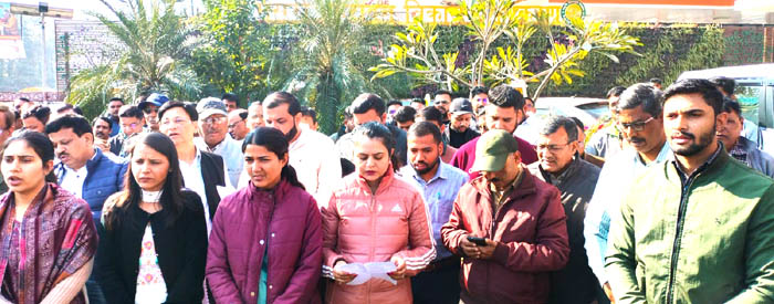 आकाश ज्ञान वाटिका, बुधवार, 26 नवम्बर 2025, देहरादून। संविधान दिवस के अवसर पर बुधवार को मसूरी-देहरादून विकास प्राधिकरण (एमडीडीए) में एक गरिमामय कार्यक्रम आयोजित किया गया। कार्यक्रम की अध्यक्षता सचिव एमडीडीए मोहन सिंह बर्निया ने की। इस मौके पर अधिकारियों एवं कर्मचारियों ने भारत के संविधान की उद्देशिका का सामूहिक पठन किया और संविधान की मूल भावना ‘न्याय, स्वतंत्रता, समानता तथा बंधुता’ के प्रति अपनी निष्ठा व्यक्त की। एमडीडीए परिसर में आयोजित कार्यक्रम में विभिन्न शाखाओं के अधिकारी-कर्मचारी सक्रिय रूप से शामिल हुए। कार्यक्रम का समापन राष्ट्र निर्माण की दिशा में मिलकर कार्य करने के संकल्प के साथ हुआ।