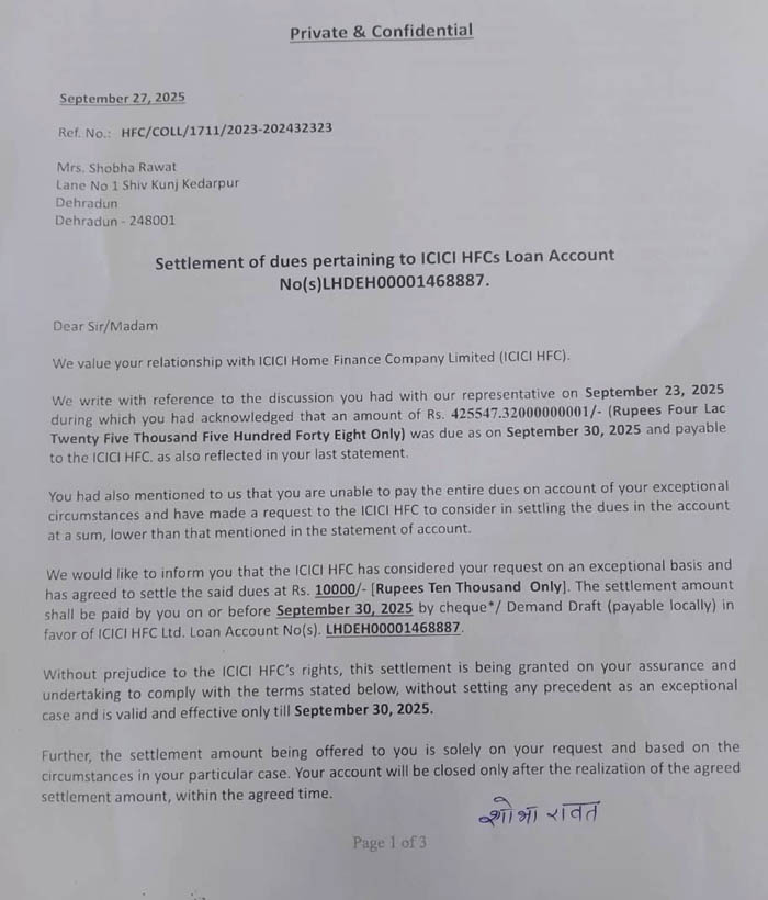 पारिवारिक जिम्मेदारी तले दबी विधवा शोभा का ऋण माफ आईसीआईसीआई ने घर जाकर लौटाए कागजात; दिया नो ड्यूज