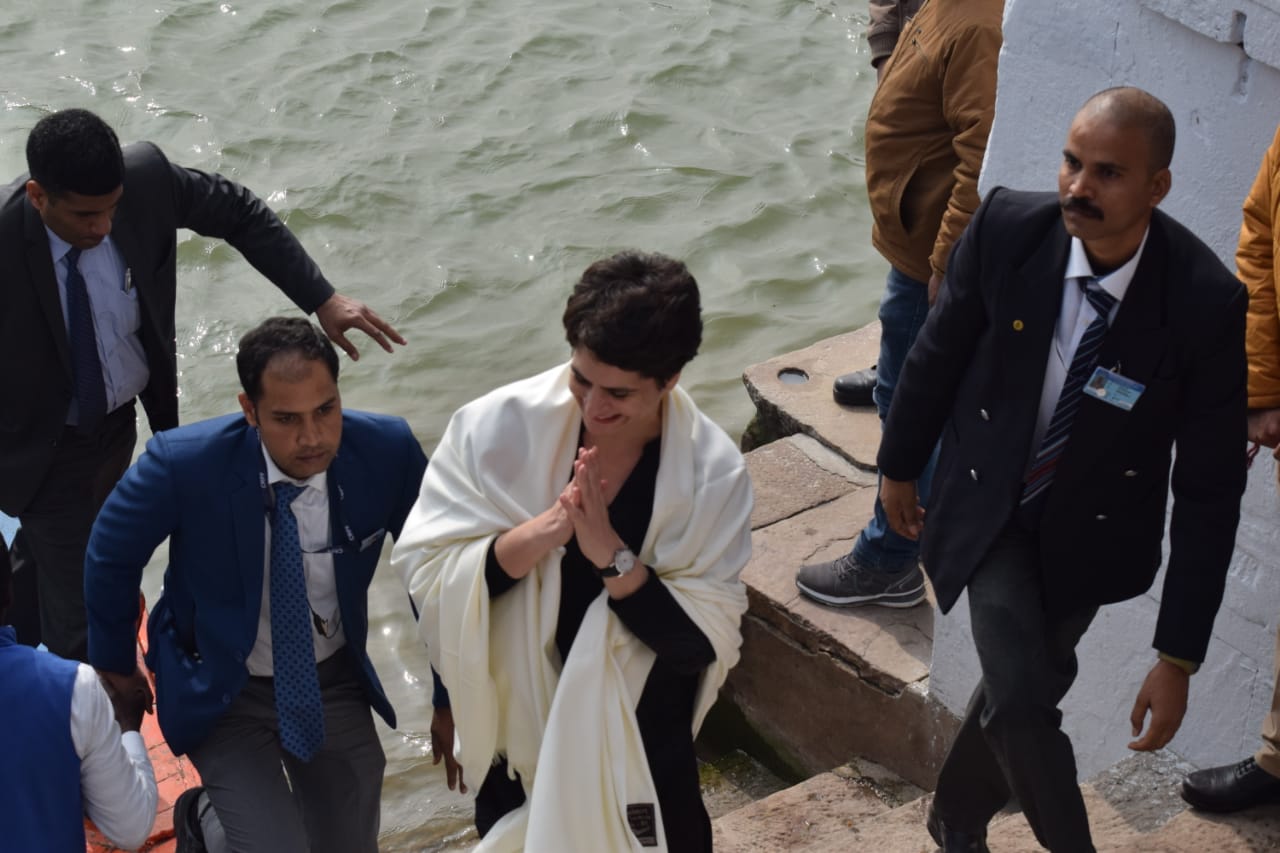 एयरपोर्ट परिसर से बाहर निकलते ही कार्यकर्ताओं ने उनके स्वागत में जमकर नारेबाजी की। उसके बाद 10.35 बजे प्रियंका गांधी सड़क मार्ग से शहर प्रस्थान कर गयीं। 11 बजे वह राजघाट पर रविदास मंदिर में दर्शन करने पहुंचीं, यहां दर्शन पूजन के बाद उन्होंने प्रसाद भी ग्रहण किया। कांग्रेस महासचिव ने बनारस के संत शिरोमणि गुरु रविदास मंदिर में दर्शन किया तो मंदिर के पुजारियों ने उन्हें स्मृति चिन्ह भेंट किया। इस दौरान उनहोंने कहा कि ‘सामाजिक उत्थान में संत शिरोमणि रविदास जी का महत्वपूर्ण योगदान रहा है’।