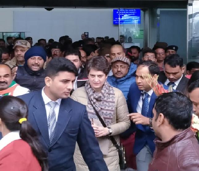 कांग्रेस महासचिव प्रियंका गांधी वाड्रा एक दिवसीय वाराणसी दौरे पर शुक्रवार को सुबह 10.20 बजे चार्टर विमान से वाराणसी के लाल बहादुर शास्त्री अंतर्राष्ट्रीय एयरपोर्ट पहुंचीं। प्रियंका के आगमन से पूर्व वाराणसी एयरपोर्ट पर पूर्व सांसद राजेश मिश्रा, पूर्व विधायक अजय राय, वीरेंद्र सिंह व मेवालाल बागी, जिलाध्यक्ष राजेश्वर पटेल सहित अन्य नेता एयरपोर्ट पर पहुंच गए थे। प्रियंका गांधी के एयरपोर्ट पहुंचने के बाद पार्टी के वरिष्ठ नेताओं ने मुख्य टर्मिनल भवन में उनका स्वागत किया।