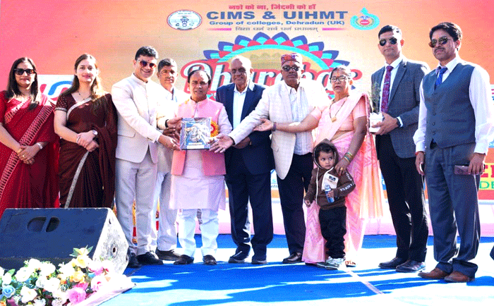 आकाश ज्ञान वाटिका, शुक्रवार, 14 नवम्बर 2025, देहरादून। सीआईएमएस एंड यूआईएचएमटी ग्रुप ऑफ कॉलेज में आयोजित चार दिवसीय धरोहर फेस्ट–2025 के तीसरे दिन का कार्यक्रम छात्र-छात्राओं की सांस्कृतिक प्रस्तुति व उत्तराखंड के कलाकारों की प्रस्तुति के नाम रहा। तीसरे दिन के कार्यक्रम में उत्तराखंड सरकार में उच्च शिक्षा एवं चिकित्सा शिक्षा मंत्री डॉ. धन सिंह रावत मुख्य अतिथि के रूप में तो वहीं उत्तराखंड अल्पसंख्यक आयोग के पूर्व अध्यक्ष पद्मश्री डॉ. आर. के. जैन विशिष्ट अतिथि के रूप में उपस्थित रहे।